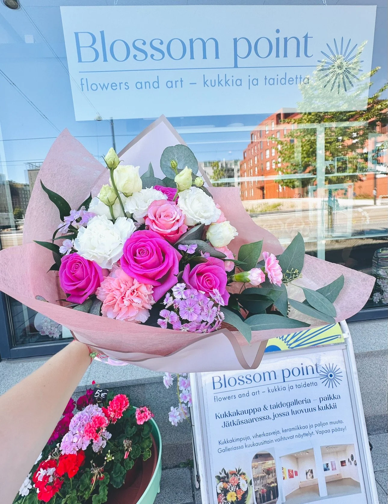 Myymälämme tarjoaa ainutlaatuisia kukka-asetelmia ja kasveja sekä inspiroivaa taidetta. Toivomme, että Blossom pointista tulee paikka, jossa kaikki voivat nauttia luovuudesta sen kaikissa muodoissa.